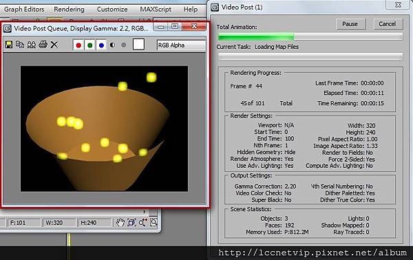 21. 使用上次的3ds MAX技術文「光暈特效」的技巧,使用在粒子系統上,並輸出為影片。