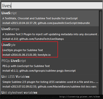 安裝套件視窗中,找出或是輸入「LiveSyle」,點擊安裝。