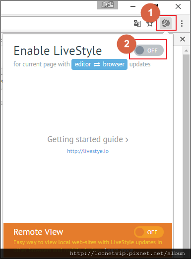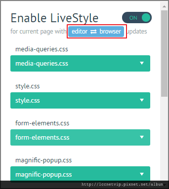 接著點擊Chome上的LiveStyle套件,並將原本的OFF調整成ON。
