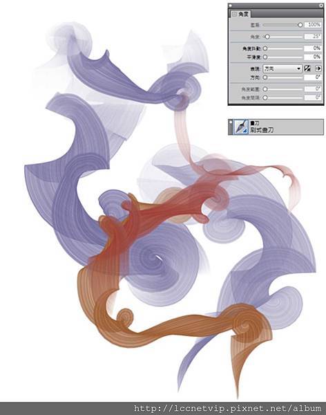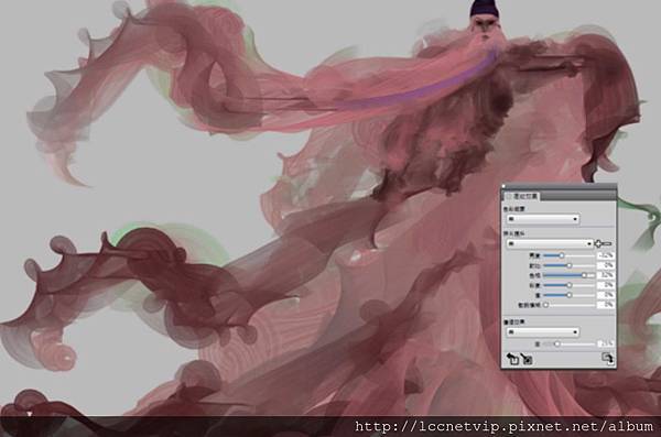 13.繼續處理抽象布料的部份,這裡可以使用特效筆刷中的「膨脹」及「擠壓」依著色塊的交界線或外圍來刷製。