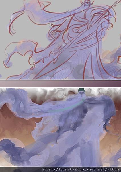 15.再背景天加上天光、遠景及旌旗兵馬,並在上面蒙上一層灰灰薄薄的煙塵。