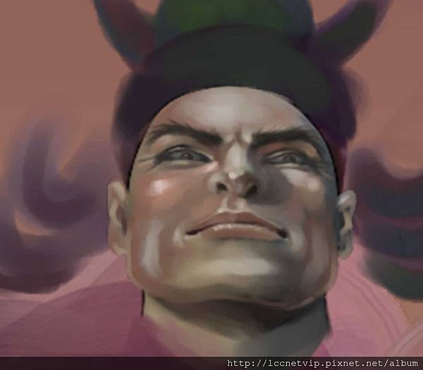 6.人物的臉部描繪,除了色澤跟立體感之外,還要特別注意這是個「仰角」的頭部,絕對別再畫成慣性的正臉角度了!
