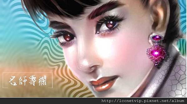 7.將之前以「液態金屬」繪製完成的裝飾品匯入,經過變形旋轉之後即可成為亮眼的髮飾了。另外,背景也改成跟膚色前後呼應的色調,最後再提亮膚色讓人物凸顯出來,這就是我們永遠的天使─赫本小姐!